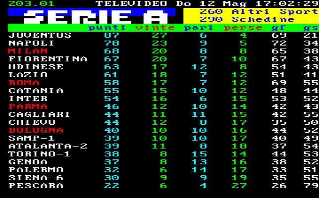 FOTO CLASSIFICA – Napoli al fotofinish, record di punti migliorato. Udinese in zona Europa League 12/05/2013 di Mario D'Amiano Ecco la classifica dopo le gare delle 15: M.D.A.