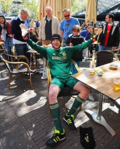 Tanti tifosi del Chelsea in terra olandese per assistere alla finale di Europa League contro il Benfica. I fan inglesi sono da giorni ad Amsterdam e hanno dato sfoggio della loro fantasia. Ad esempio un tifoso si è letteralente travestito da Peter Cech. Vedere per credere nella seguente foto