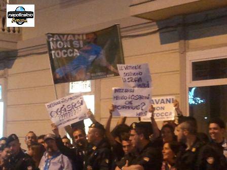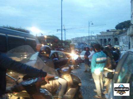 Grande entusiasmo all’arrivo degli azzurri a via Aniello Falcone. La strada del Vomero è rimasta letteralmente paralizzata per l’arrivo dei calciatori del Napoli, diretti a Villa D’Angelo, dove si sta tenendo la cena di fine stagione. Circa 300 persone hanno atteso i calciatori arrivati alla spicciolata. Striscioni e cori e ovazioni, soprattutto per Cavani, Mazzarri e Behrami.