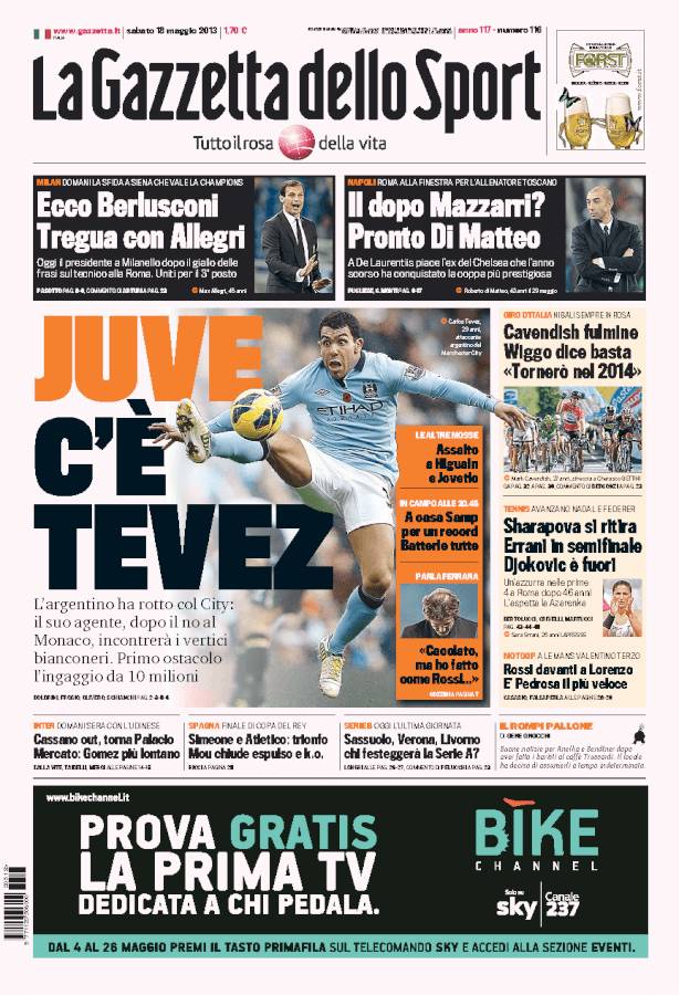 RASSEGNA STAMPA – Le prime pagine dei quotidiani sportivi