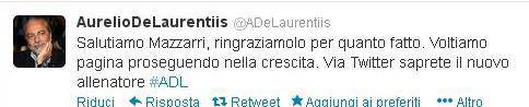 FOTO – De Laurentiis su Twitter: “Salutiamo Mazzarri, adesso voltiamo pagina. Ecco come saprete il nuovo mister” 20/05/2013 di Mario D'Amiano Ecco il tweet di Aurelio De Laurentiis al termine dalla gara di ieri: M.D.A.