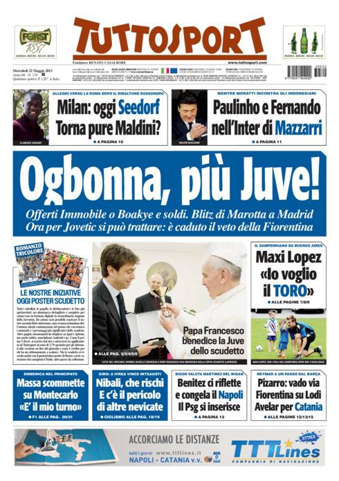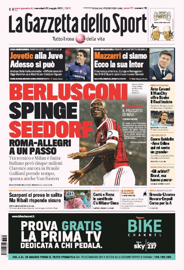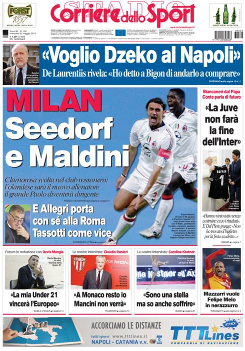 RASSEGNA STAMPA – Le prime pagine dei quotidiani sportivi 22/05/201322/05/2013 di antoizzo De Laurentiis vuole Dzeko al Napoli, il City vuole Cavani. Intanto Mazzarri sta per accasarsi all’Inter A.I.