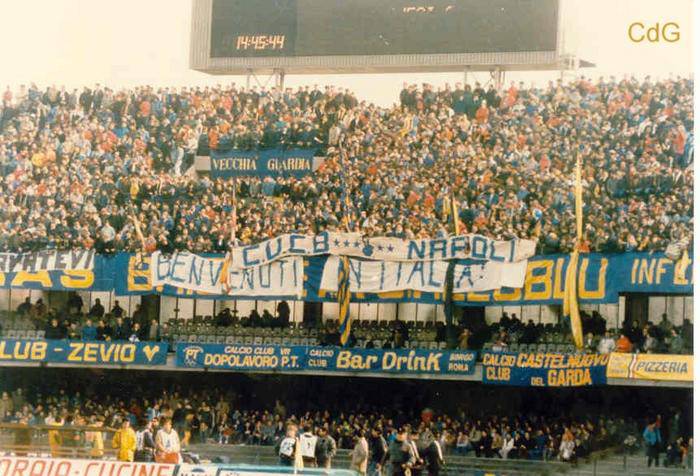1984: DIEGO ARRIVA A VERONA – Le schermaglie tra Napoli e Verona sono state molto forti negli anni 80, epoca in cui la squadra scaligera combatteva ai vertici del calcio italiano. In particolare un episodio su tutti. Stagione 1984-85, la prima di Diego Armando Maradona in Italia. Al debutto, guarda caso, c’è Verona-Napoli. Figurarsi l’accoglienza riservata al Pibe de Oro e al suo Napoli. Di Gennaro, calciatore gialloblù, nel dopo-gara minimizzerà la figura di Diego, visto che il suo Verona vinse 3-1.