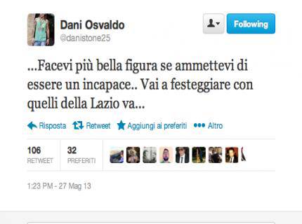 Scoppia la polemica a distanza tra Osvaldo e il suo allenatore. L’attaccante giallorosso su twitter ha attaccato, non facendo alcun riferimento al destinatario, con una frase forte. Ma il sospetto è che sia stato Andreazzoli a essere stato additato come “incapace” dal suo giocatore. Il motivo sarebbe evidente (ma non giustificabile), ovvero il mancato utilizzo nella finale di Coppa Italia contro la Lazio. Il tecnico della Roma aveva definito Osvaldo “piagnucoloso” alla luce degli insulti alla fine del derby (LEGGI LA NEWS). Il ct dell’Italia, Cesare Prandelli, potrebbe prendere dei seri provvedimenti per il comportamento dell’italo-argentino sul social network e non portarlo alla Confederations Cup, alla luce di quel codice etico che vige in Nazionale. Che sia l’ultimo atto di Osvaldo in giallorosso? Le richieste da parte di altri club, di certo, non mancano al calciatore.