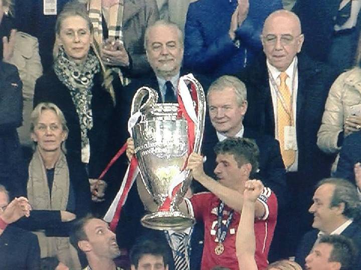 FOTOGALLERY – Il Bayern alza la coppa, una “vecchia conoscenza” sullo sfondo 26/05/201326/05/2013 di Mario D'Amiano Ecco De Laurentiis e Galliani ditero la ‘Coppa dalle grandi orecchie’ alzata dai calciatori del Bayern Monaco dopo la vittoria della Champions League. Ecco le foto: Fonte: SportMediaset.it M.D.A.