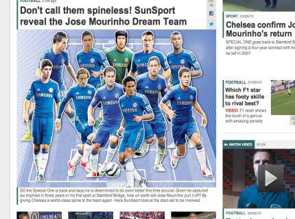 Il quotidiano inglese ‘The Sun’ ipotizza il ‘Dream Team‘ che sarà alle dipendenze di Jose Mourinho la prossima stagione. Come si evince dalla foto, Cavani è vestito di ‘blues’ ed è forse il gioiello più atteso, visto che viene messo in primo piano. Tra gli altri innesti eccellenti anche Varane e Modric, pronti a seguire lo ‘Special One’ da Madrid.