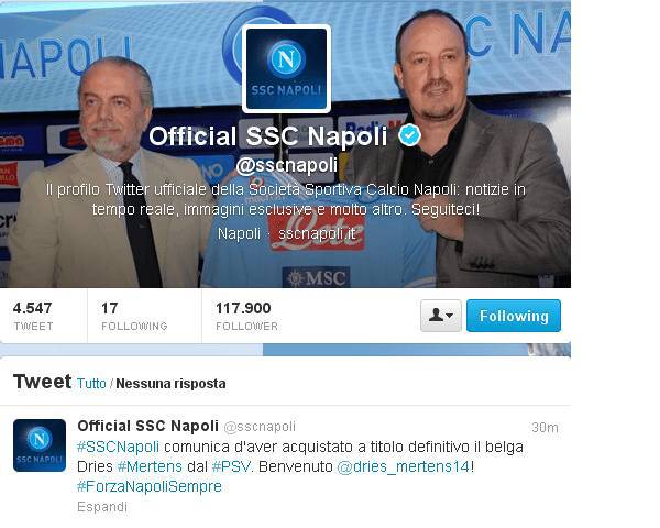 Dopo il tweet in inglese del presidente De Laurentiis (LEGGI LA NEWS). arriva anche quello della società ad ufficializzare l’acquisto di Mertens. Ecco il tweet dal profilo ufficiale della società