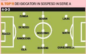 La top 11 dei giocatori in sospeso in serie A quest’anno è piuttosto ricca. Si tratta di una squadra altamente competitiva, la maggior parte proveniente da top-club. Nella formazione ideale, ipotizzata dalla ‘Gazzetta Sportiva’, c’è anche Zuniga oltre a quelli che sembrano essere due obiettivi azzurri: Matri per l’attacco e Ranocchia per la difesa.