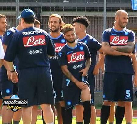 21/07. Lorenzo Insigne fa il suo ingresso sul campo di allenamento e sin da subito accusa una fitta alla coscia sinistra. Piccole smorfie di dolore, poi il tutto rientra ed il funambolo azzurro ritrova il sorriso in partitella.