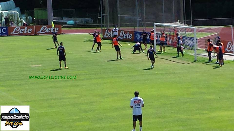 Allenamento mattutino per i calciatori partenopei a Dimaro. Benitez prova i movimenti degli attaccanti e dei difensori in una sorta di sfida tra i due reparti. NapoliCalcioLive.com si trova a Dimaro e vi propone un’immagine dell’allenamnto: