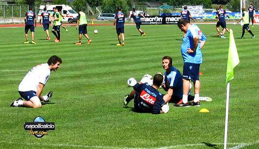 Curioso siparietto a bordo campo tra Morgan De Sanctis, il terzo portiere Roberto Colombo ed il magazziniere del Napoli, Tommaso Starace. Il ‘Pirata’ sostiene scherzosamente di essere il migliore portiere che abbia vestito l’azzurro negli ultimi anni: “Sono davanti a tutti – dice – . Chi dopo di me? Taglialatela e Zoff, altro che Galli: io quel gol da Maradona, da 50 metri, non l’avrei preso”. Colombo non è d’accordo, ma Morgan lo smentisce prontamente: “Non mi sembra che Zoff abbia fatto qualcosa di importante nel Napoli. Ti risulta che abbia vinto Scudetti o coppe?”. Su Starace, che sbotta invece sulla frase che tira in ballo “Diego”, chiosa sorridendo: “Va bè ho capito, non te lo tocco…”.