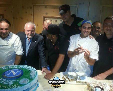 Ore di relax per il Napoli, prima dell’arrivo di Gonzalo Higuaín a Dimaro. Mercoledì sera l’intera rosa, con tanto di staff tecnico e Dirigenza, ha cenato in compagnia del padre e del procuratore dell’attaccante argentino presso l’Hotel Rosatti. Chef d’eccezione Giuseppe Bruno, in arte Bobò, storico ristoratore puteolano giunto appositamente da Napoli per allietare i presenti con le sue prelibatezze. In esclusiva per NapoliCalcioLive.com, Bobò, da sempre molto vicino all’ambiente azzurro, ha confidato i dettagli della serata: “Ottanta invitati esclusivi, tra cui il mio caro amico Raffaele Auriemma, hanno gustato i piatti dello chef Giacomo Salzano. Apertura con antipasto di parmigiana di cicinielli, pesce bandiera al sugo, polpo alla luciana, sauté di vongole, lupini e taratufi, mozzarella di bufala e pomodorini del Vesuvio; come primi, ‘cappellacci alla Sofia’ e spaghetti ai ricci di mare; secondi: gamberoni alla brace e pezzogna al forno”.
