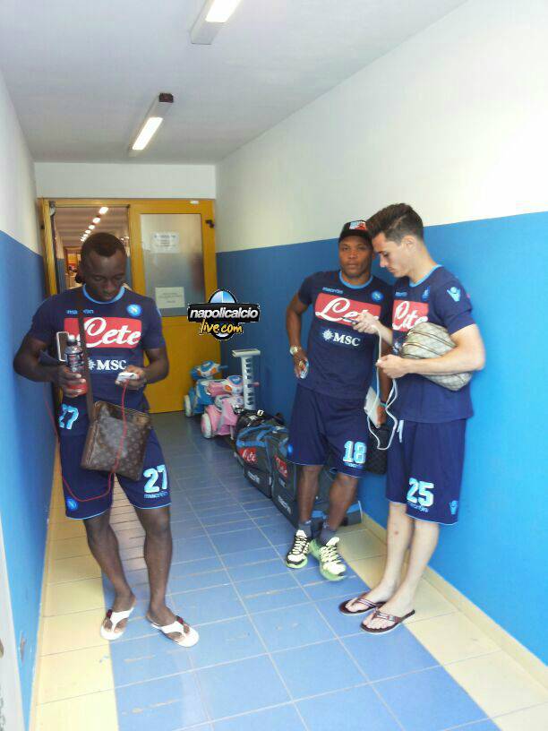 Momenti di relax per i giocatori azzurri dopo l’allenamento sotto il caldo cocente, qui a Dimaro. NapoliCalcioLive.com ha ripreso Camilo Zuniga, Pablo Armero e José María Callejón a ridosso degli spogliatoi: il primo, visibilmente stanco, con in testa l’immancabile berretto; gli altri due, più distesi, con infradito e l’irrinunciabile telefono che consultano non appena hanno un attimo di riposo dal campo.