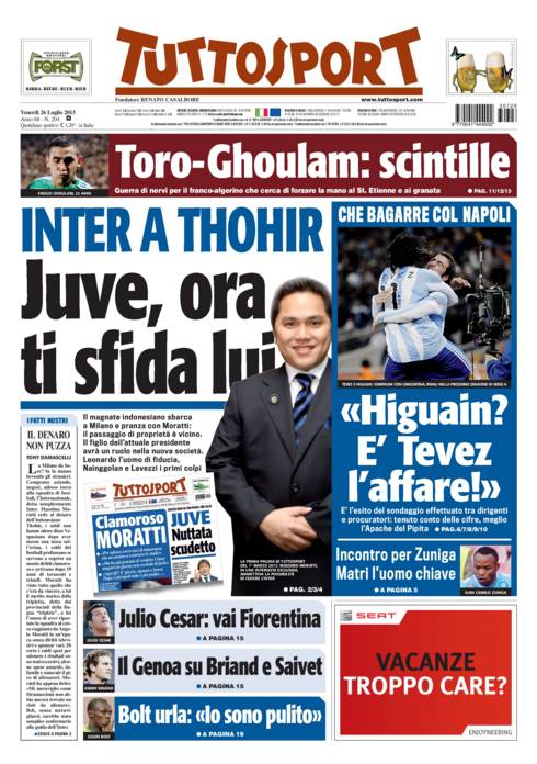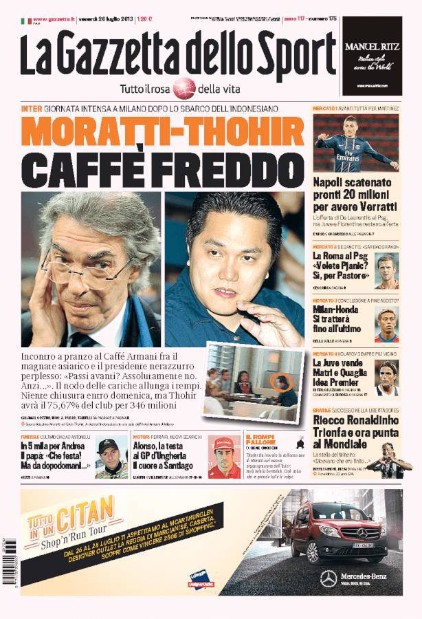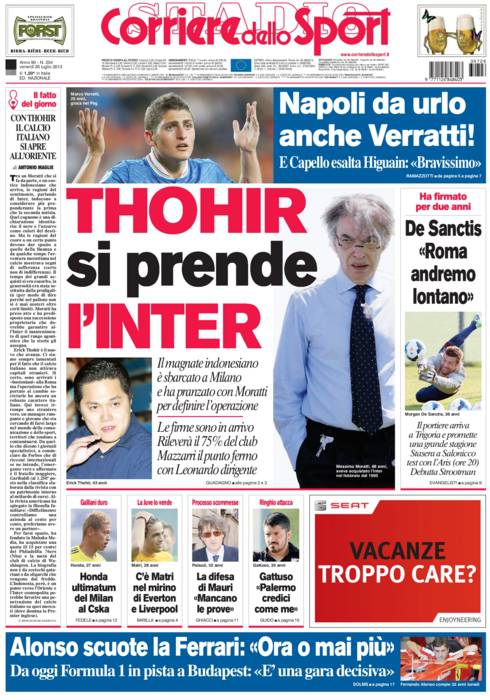RASSEGNA STAMPA – Le prime pagine dei quotidiani sportivi 26/07/2013 di Mario D'Amiano Ecco le prime pagine dei quotidiani sportivi: M.D.A.