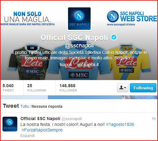“La nostra festa, i nostri colori! Auguri a noi!”. Questo il tweet celebrativo del calcio Napoli in occasione del compleanno della società. Nato nel 1926, il Napoli compie oggi 87 anni.