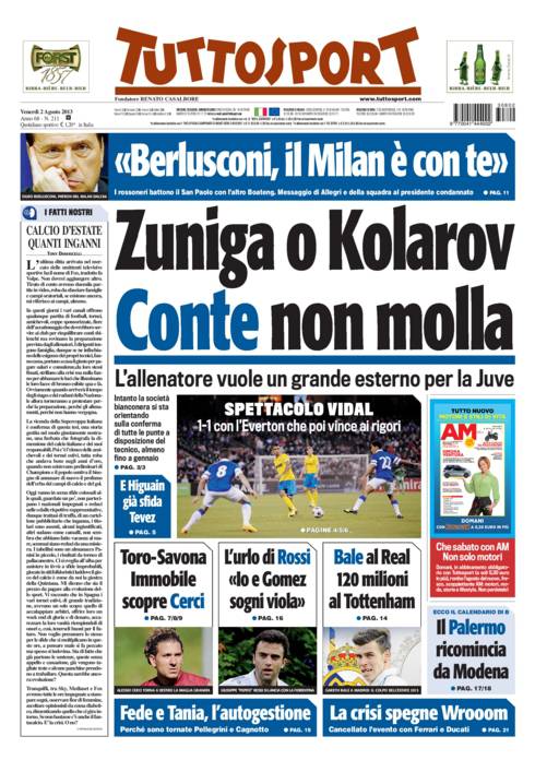 RASSEGNA STAMPA – Le prime pagine dei quotidiani sportivi 02/08/201302/08/2013 di Mario D'Amiano Ecco le prime pagine dei quotidiani sportivi: M.D.A.