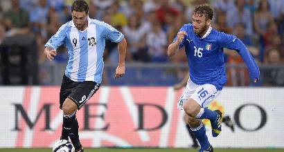 Nell’amichevole organizzata in onore di Papa Francesco, l’Italia perde 2-1 contro l’Argentina. All’Olimpico di Roma, Higuain sblocca la partita al 20′ dopo un errore di De Rossi. L’Albiceleste raddoppia con Banega (49′) mentre gli azzurri, in grande difficoltà dal punto di vista fisico, si accendono solo nel finale grazie agli ingressi in campo di Diamanti (traversa su punizione al 67′) e Insigne, che realizza l’1-2 con un destro a giro al 76′. Difesa italiana da rivedere. L’Arentina ha sfiorato il gol in più occasioni a causa di alcuni svarioni del reparto arretrato. Molto buona la prestazione di Higuain e Insigne, tra i migliori in campo e autori del primo gol argentino e unico gol italiano.