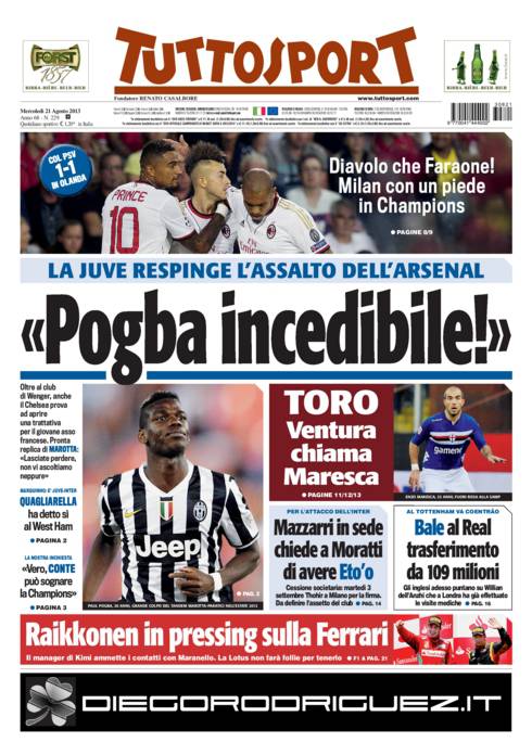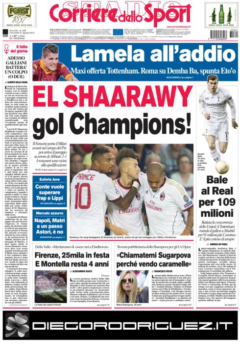 RASSEGNA STAMPA – Le prime pagine dei quotidiani sportivi 21/08/201321/08/2013 di Mario D'Amiano M.D.A.
