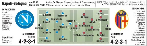 A poche ore dall’esordio in campionato, Rafa Benitez pensa ad un cambio tattico sulla fascia destra. Al posto di Callejón, infatti, secondo ‘Il Mattino’ potrebbe essere schierato a sorpresa Goran Pandev. Dall’altro lato, modulo analogo per la formazione allenata da Pioli che recupera Kone accanto a Diamanti.