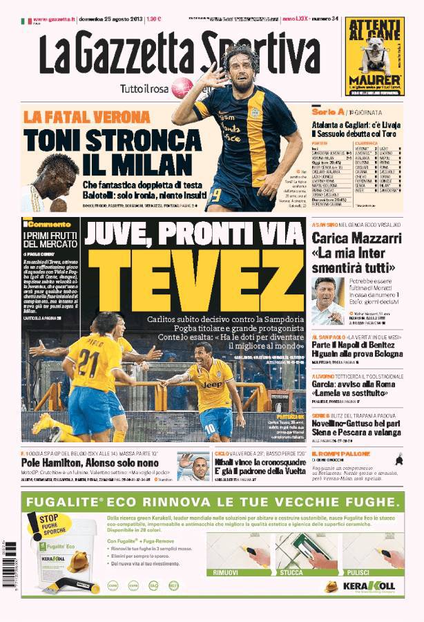 RASSEGNA STAMPA – Le prime pagine dei quotidiani sportivi