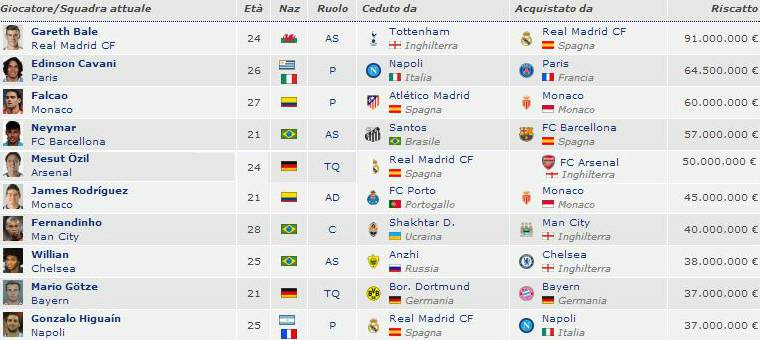 Tanti gli acuisti e le cessioni di prestigio, nella sessione estiva del calciomercato. Nella ‘top ten’ delle operazioni più importanti, compare per ben due volte la voce Napoli. Ecco la classifica stilata da Transfermarkt: