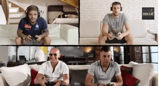 Lorenzo Insigne e Mattia Destro battono Arrigo Sacchi e Stephan El Shaarawy. Non si tratta di calcio giocato, quanto di un promo per Fifa 14, in cui il Magnifico e l’attaccante della Roma ‘stracciano’ letteralmente i due avversari. Di seguito ecco il video Get on Board Tour, tratto dal canale youtube di ‘EA SPORTS FIFA Italia’, che promuove il videogioco. I tre attaccanti faranno da testimonial nelle prossime settimane a Roma, Milano e Napoli (CLICCA PER LEGGERE LA NEWS).