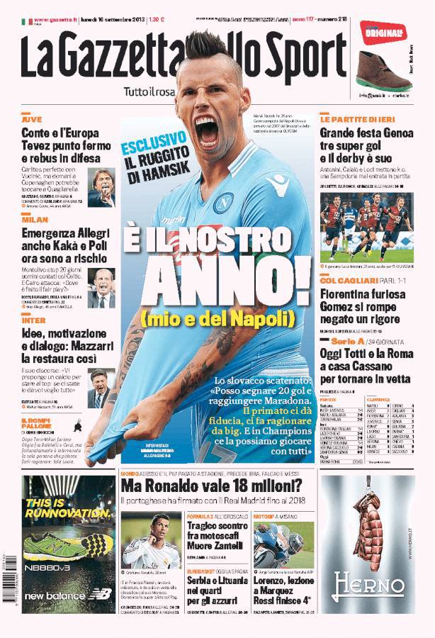 RASSEGNA STAMPA – Le prime pagine dei quotidiani sportivi