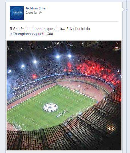 Gökhan Inler è molto carico per la partita di domani sera contro il Borussia Dortmund. Ecco la foto ed il messaggio pubblicati dal centrocampista azzurro sul suo profilo Facebook: