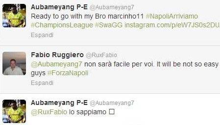 FOTO – Aubameyang risponde ad un tifoso su Twitter: teme il Napoli, leggete cosa gli ha scritto 18/02/201618/09/2013 di Antonio Papa VUOI ESSERE SEMPRE AGGIORNATO SUL NAPOLI? CLICCA QUI PER SCARICARE ‘NAPOLILIVE’, L’APP GRATUITA DI NAPOLICALCIOLIVE.COM! A seguire, la foto tratta dal profilo personale dell’attaccante del Borussia: