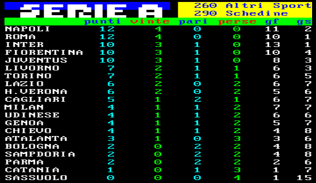 FOTO CLASSIFICA – Quattro partite, quattro vittorie: comandano Napoli e Roma 22/09/201322/09/2013 di antoizzo Missione compiuta! Il Napoli espugna San Siro dopo 27 anni e acciuffa la Roma a punteggio pieno in classifica. Gli azzurri prendono ben 8 punti di vantaggio sui rossoneri e superano anche il terzetto Inter, Juve e Fiorentina a quota 10.