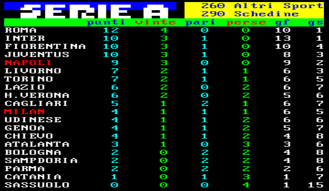 La Roma vince il derby e si conferma prima a punteggio pieno. Nella sua scia restano Inter, Fiorentina e Juventus, tutte e tre vincitrici dei rispettivi match. Il Napoli ha la grande occasione di affiancare i giallorossi al primo posto e distanziare una diretta concorrente come il Milan. Primo punto in campionato del Catania, mentre il Sassuolo non si schioda dalla casella dello zero.