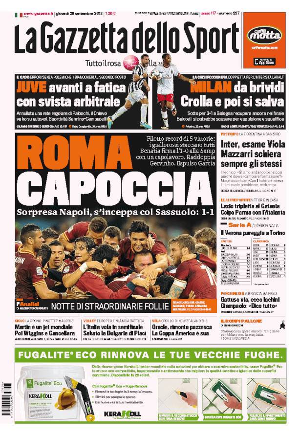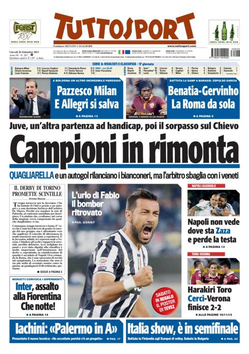 RASSEGNA STAMPA – Le prime pagine dei quotidiani sportivi