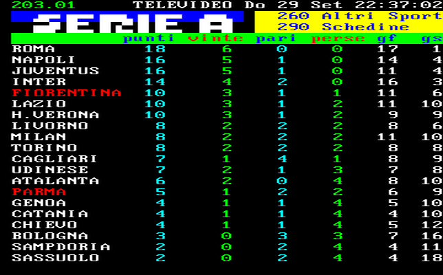 FOTO CLASSIFICA – Roma inarrestabile: 5 a 0 al Bologna, è ancora vetta solitaria 29/09/2013 di Mario D'Amiano La Roma stravince contro il Bologna e resta in vetta alla classifica di Serie A. Il roboante punteggio di 5 a 0 porta altri 3 punti ai giallorossi che così superano Napoli e Juve che per poche ore hanno occupato il primo posto. M.D.A.
