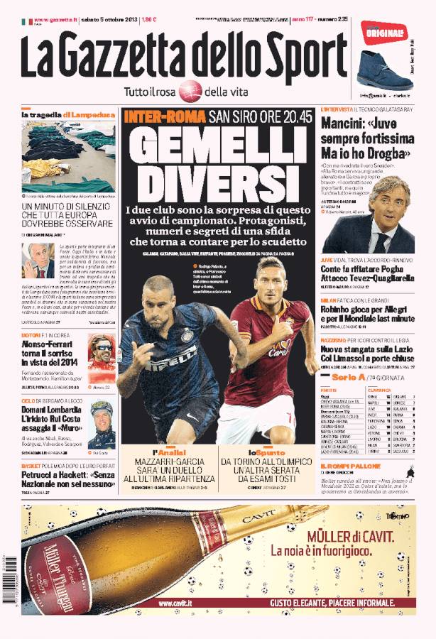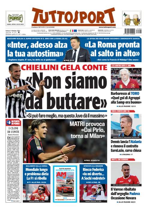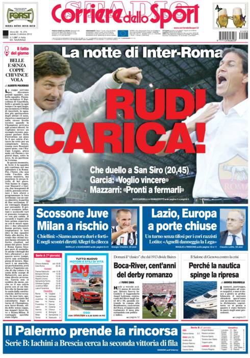 RASSEGNA STAMPA – Le prime pagine dei quotidiani sportivi