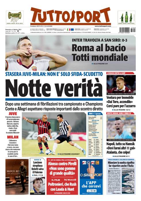 RASSEGNA STAMPA – Le prime pagine dei quotidiani sportivi