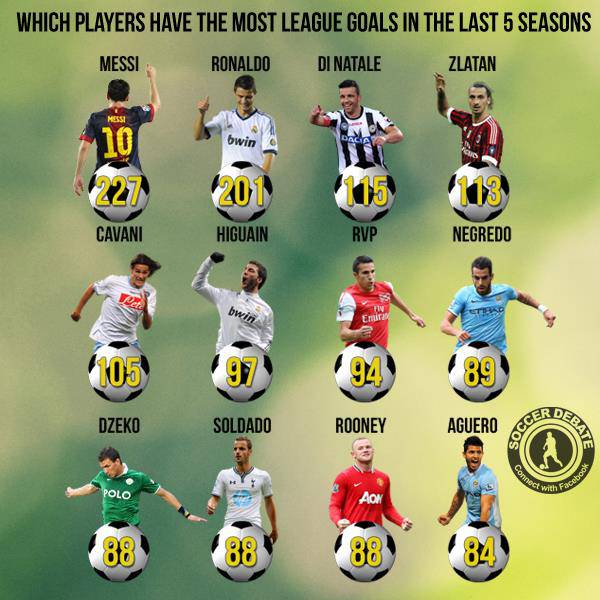 Chi sono i giocatori più prolifici delle ultime cinque stagioni? Al primo posto, manco a dirlo, c’è l’extraterrestre Messi con la bellezza di 227 gol. In seconda posizione spazio all’altro mostro sacro del calcio mondiale ovvero Cristiano Ronaldo con 201 marcature. In terza posizione? Un italiano! Si tratta di Antonio Di Natale, bandiera dell’Udinese con 115 gol. Davvero niente male considerando che Totò è davanti a gente come Ibrahimovic (113), Cavani (105) e Higuain (97). Una bella nota questa del capitano dei friulani, piccolo campione in mezzo a fenomeni dal valore economico plurimilionario.
