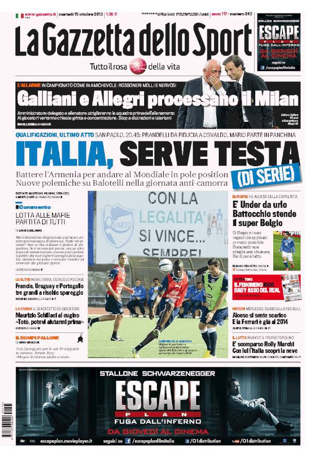 RASSEGNA STAMPA – Le prime pagine dei quotidiani sportivi