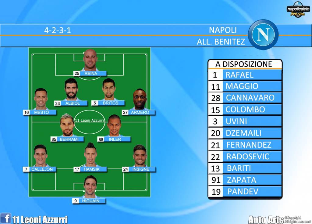 A poche ore dal big match di questa sera, Benitez non sembra aver preso una decisione chiara circa la difesa da schierare. Probabile l’esclusione di Albiol, non ancora al meglio, e la presenza dal primo minuto di Cannavaro. Sulla fascia sinistra, uno tra Mesto e Armero prenderà il posto di Zuniga: in alternativa entrambi in campo e Maggio in panchina. In attacco dovrebbe tornare titolare Gonzalo Higuain, ma un dubbio riguarda anche la presenza di Insigne, stanco dopo l’impegno di martedì sera con l’Italia.