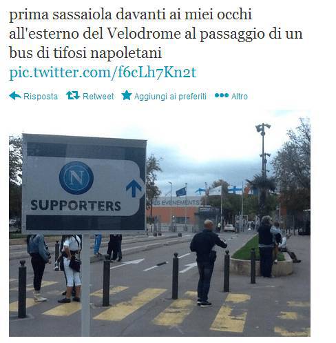 FOTO – Alvino denuncia: “Sassaiola davanti ai miei occhi al passaggio di un bus di tifosi napoletani” 22/10/2013 di Antonio Papa A seguire, lo scatto tratto dal profilo personale del collega Carlo Alvino: