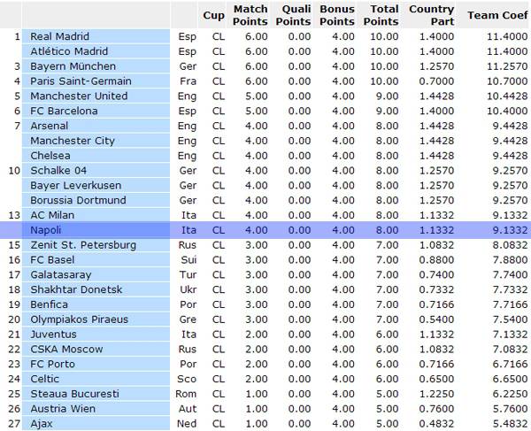 FOTO – Ranking UEFA: Napoli meglio della Juve! Ecco i dettagli 24/10/2013 di Antonio Papa A seguire, il Ranking UEFA dei team e dei paesi della confederazione dopo il terzo turno di Champion’s League: