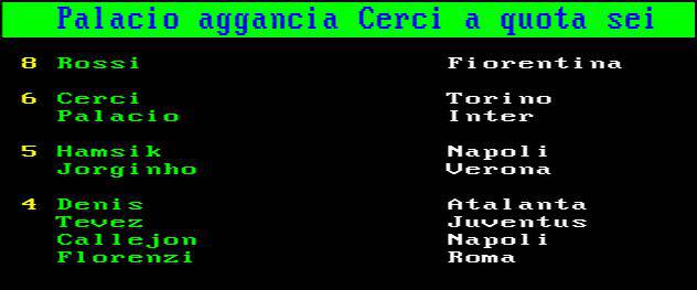 FOTO CLASSIFICA MARCATORI – Palacio supera ‘fortunosamente’ Hamšik tra i cannonieri 27/10/2013 di Antonio Papa A seguire, la classifica marcatori provvisoria dopo gli anticipi: grazie al fortunoso gol contro il Verona, Rodrigo Palacio dell’Inter ha superato Marek Hamšikin graduatoria.