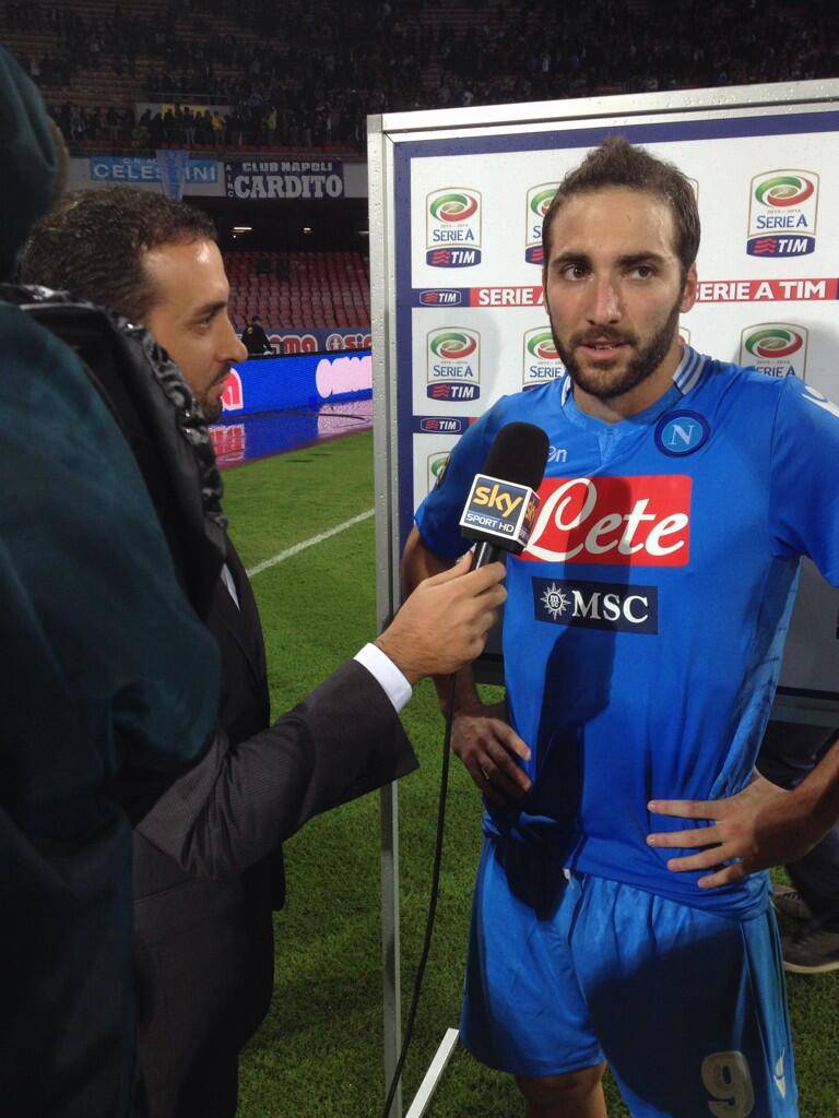 Il Napoli vince contro il Catania e si porta a meno due punti dalla Roma, impegnata domani in campionato. La SSC Napoli ha postato un tweet con le parole di Gonzalo Higuain a Sky: “Sono felice di giocare in questo stadio con questi tifosi e d’aver recuperato dall’infortunio“.