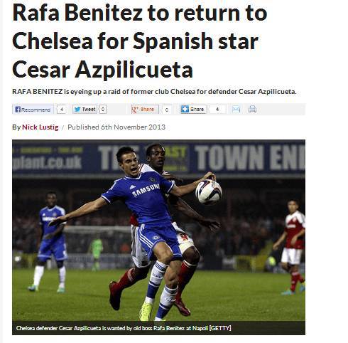 L’emergenza esterni in casa Napoli potrebbe essere risolta solo a gennaio, a meno che non arrivi qualcuno dal mercato degli svincolati. Tra i nomi che circolano con maggiore insistenza c’è quello di Cesar Azpilicueta, 24enne terzino destro del Chelsea che sta trovando pochissimo spazio con Mourinho (solo 3 presenze in Premier League per un totale di 31 minuti collezionati). Benitez starebbe pensando a lui, dopo che lo ha avuto lo scorso anno ai ‘Blues’ per sei mesi, periodo in cui il giocatore colpì molto il tecnico. L’ex Marsiglia, è arrivato a Londra nel 2012 per circa 8 milioni di euro. La scorsa stagione 27 presenze e un gran contributo alla qualificazione in Champions e alla vittoria di Europa League. Secondo quanto scrive il ‘Daily Star’, lo scarso impiego di Mourinho, potrebbe spingere l’esterno a cambiare aria. I mondiali in Brasile incombono e il giocatore rischia di perdere la Nazionale Spagnola.