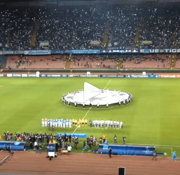 Il profilo Instagram del Napoli pubblica un video con la raccolta dei quattro boati del San Paolo. Anzitutto quello ormai immancabile, il grido ‘The Champions‘ sulle note dell’inno della manifestazione; poi gli altri tre riservati agli autori dei gol, ovvero Inler e Higuaìn.