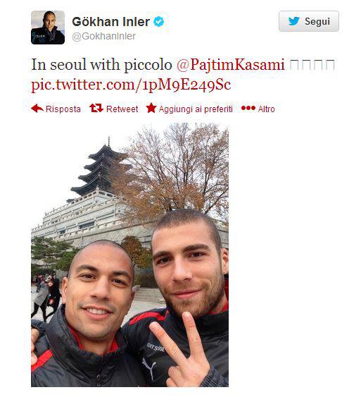 Impegnato nel ritiro della sua Nazionale, Gökhan Inler ha approfittato del tempo libero per visitare Seoul insieme agli altri calciatori della Svizzera. A seguire, una foto pubblicata dal centrocampista azzurro in compagnia di Pajtim Kasami, ex Palermo, oggi al Fulham: