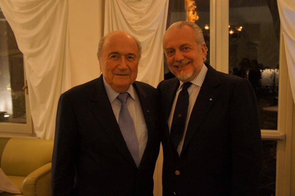 FOTO – Incontro ravvicinato per De Laurentiis a Roma 23/11/2013 di Mario D'Amiano Incontro casuale per Aurelio De Laurentiis a Roma. Il presidente del Napoli ha postato una foto (che lo ritrae insieme a Blatter) su Twitter con il seguente messaggio: “Un incontro casuale ma molto piacevole con Blatter in un ristorante di Roma“.