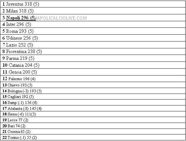 Il Napoli è in crescita vertiginosa negli ultimi anni. Dal ritorno in Serie A, il club si De Laurentiis ha impiegato poco tempo per stabilirsi ai vertici del campionato. Come dimostra una statistica di TuttoSport, negli ultimi 5 anni ha dominato l’accoppiata Milan-Juve, con Napoli e Inter, a pari punti, subito dietro. Importante traguardo per i partenopei, i quali aspettano da troppi anni di classificarsi, da soli, in vetta alla Serie A.