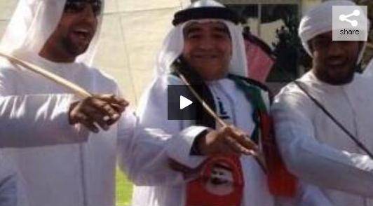 Diego Armando Maradona a Dubai vestito da sceicco, che ballacon Henry: sono le immagini di un video in circolazione, ovviamente diventato subito virale. L’occasione del travestimento sono stati i festeggiamenti per la giornata nazionale dell’indipendenza degli Emirati Arabi Uniti, ricordano alcuni dei commenti apparsi nelle reti sociali sul video, subito denominato “Diego bin Armando Al-Maradona”. “Evidentemente l’ex allenatore della nazionale argentina si sente a suo agio negli Emirati”, afferma un quotidiano locale, ricordando che Maradona è ‘ambasciatore sportivo’ del paese arabo, dove ha d’altra parte allenato la squadra Al Wasl.