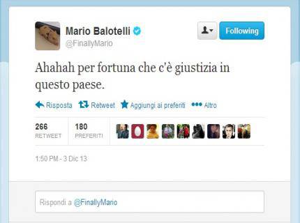 Non l’ha presa certo bene: Mario Balotelli non ha apprezzato la decisione del giudice sportivo di non squalificare Spolli dopo il presunto insulto razzista rivolto all’attaccante dal difensore del Catania. Poco dopo il comunicato della Lega con le squalifiche riferite all’ultimo turno del campionato, il bomber del Milan ha tweetato: “Ahahah per fortuna che c’è giustizia in questo paese”. Nessun riferimento diretto, ma è facile supporre che frase fosse rivolta al caso-Spolli.