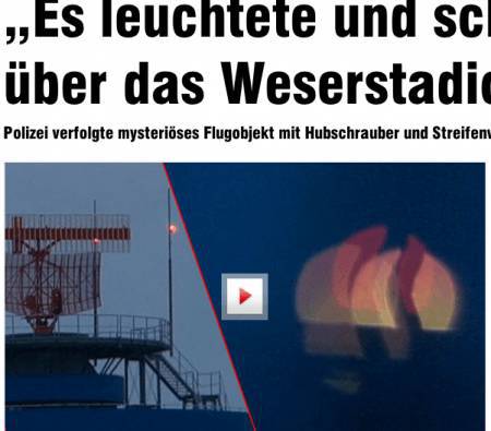Notizia assolutamente bizzarra quella che arriva dalla Germania: dopo gli avvistamenti di ieri, è arrivata in serata la conferma della polizia tedesca. Un UFO sarebbe stato avvistato sopra lo stadio del Werder Brema alle 18,30 di martedì 7 gennaio: “Due agenti hanno avvistato quello che ai loro occhi era sembrato un elicottero – ha detto il portavoce della polizia alla Bild – si trovavano nella zona dello stadio alle 18.31. Ma secondo le loro testimonianze, l’oggetto volante non era un elicottero: non si sentivano rumori forti e la luce prodotta era molto forte, brillante. Dallo stadio si è mosso verso il centro città: gli agenti lo hanno seguito con l’auto di pattuglia ma poco dopo è scomparso tra le nuvole”. Una storia che può far sorridere, non fosse che a raccontarla è una fonte ufficiale come la polizia tedesca.
